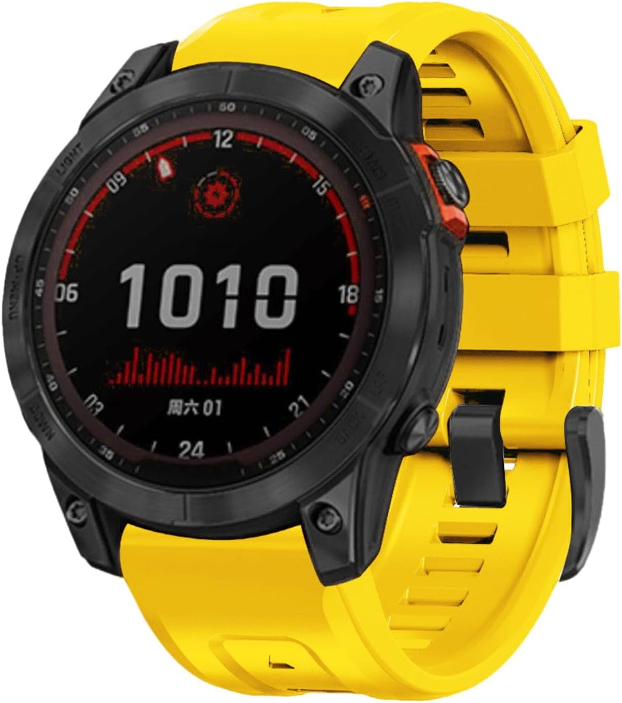 Product Specifications: Product Basic Information: Materials: Premium Silicone Buckle: Stainless Steel Tand Buckle Release: Metal Quick Fit Adapter Weight: 35g Band Width: 26mm Band Length: 124mm + 82mm 18 Precision Cut Eyelets: Allow for individualized adjustment; wrist range 5.3-8.3 inches for a perfect fit Compatible with 26mm Quick fit Garmin models, ensuring a seamless fit. Note exclusions to avoid compatibility issues: D2 BRAVO D2 Charlie D2 Delta PX (Not for D2 Delta S/D2 Air) Descent MK1/MK2/MK2i (Not for Descent Mk2S/G1) Enduro/Enduro 2 Epix Pro Gen 2 Sapphire 51 mm (Not for 42/47mm) Epix Pro Gen 2 Standard 51 mm (Not for 42/47mm) Fenix 3, Fenix 3 HR, Fenix 3 Sapphire Fenix 5X, Fenix 5X Plus (Not for Fenix 5/5s) Fenix 6X Pro Solar (Not for Fenix 6/6s) Fenix 7X series, Foretrex series Instinct 2X Solar, Instinct 2X Solar Tactical (Not for Instinct/Instinct 2s) Quatix series, Tactix 7 series, and more. Ensure compatibility to avoid return inconveniences. Color Options: Choose from an array of vibrant colors: Black, Cyan Blue, Greyish Turquoise, Limed Spruce, White, Sunglow Yellow, Yellowish Green, Army Green, Dark Blue, Purple, Red, Bright Pink, and Brown. Unique Features: Hypoallergenic Soft and snug fit around the wrist Durable, wear-resistant, waterproof, scratch-resistant, dustproof Easy to clean Strong elasticity of silicone material Durability and Quality: Crafted from enhanced silicone for a soft yet robust watch band: Enhanced Silicone Construction:Soft on the skin, resilient over time. Resistant to Wear:Maintains aesthetic appeal after prolonged use. Sweat and Environmental Factors:Adapts to different conditions without compromising quality. Secure Fit:Tang buckle and metal Quick Fit adapter for a secure and stable fit.