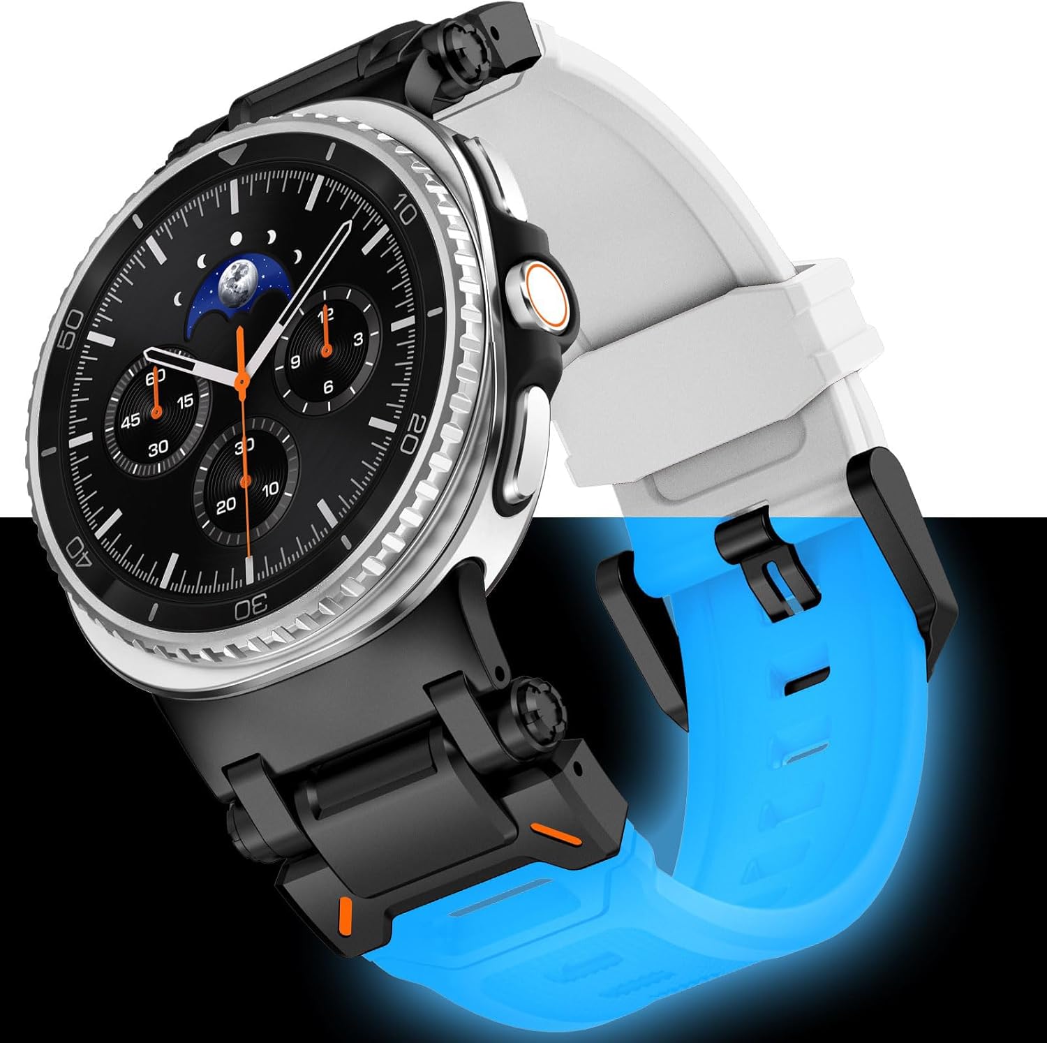 WINGLE for Galaxy Watch 8/8 Classic Band Galaxy Watch Ultra Bands 47mm 40/44/46mm Men Samsung Silicone Rubber Sport Bands Rugged Durable Armor Military Band with Stainless Steel Metal Connector. 【Rugged Sport Rubber Bands】Engineered for Adventure. Unibody Samsung Galaxy 8 Classic/8 band is crafted from high-quality FKM (Fluoroelastomer) rubber with durable 316L stainless steel metal connectors for durability and all day comfort. Two joints of metal connector and the connection of metal connector and silicone rubber strap are bendable to fit your wrist better. 【Match Made for Galaxy Watch Ultra】Rugged yet sleek metal connectors features bolder look and orange accents to complement your Galaxy 8/8 Classic Watch. 26mm ultra wide and 3mm thick galaxy watch ultra band with metal adapter takes on a rugged look to accent your boldness, it's the ultimate answer to showcase your toughness and rugged charm. 【Comfortable & Secure for any occassion】Soft and breathable rubber galaxy watch 8 Classic bands/galaxy watch 8 band provides all-day comfort for all exploration like running, hiking, mountaineering, riding, rock climbing, skiing, etc. Solid metal connectors is easy to install or remove, lock onto your Apple Watch with precision on both ends, experience a secure fit that offers peace of mind. 【Multiple Options as gift 】We offer different color combinations for this samsung galaxy watch 8 Classic/8 band to ensure you have enough choices to achieve the ideal state to meet your fashion demand. It's a perfect gift for friend or familys, Fathers day, Thanksgiving Day, Christmas, New Year, etc. 【Customer Service】We offer 2-Year warranty for FULL-REFUND or FREE REPLACEMENT. If defective or any quality problems., please CONTACT US via the steps "Login Amazon" → "Your Account" → "Your orders" → "Ask Product Question". We'll respond within 24 hours with a satisfied solution.